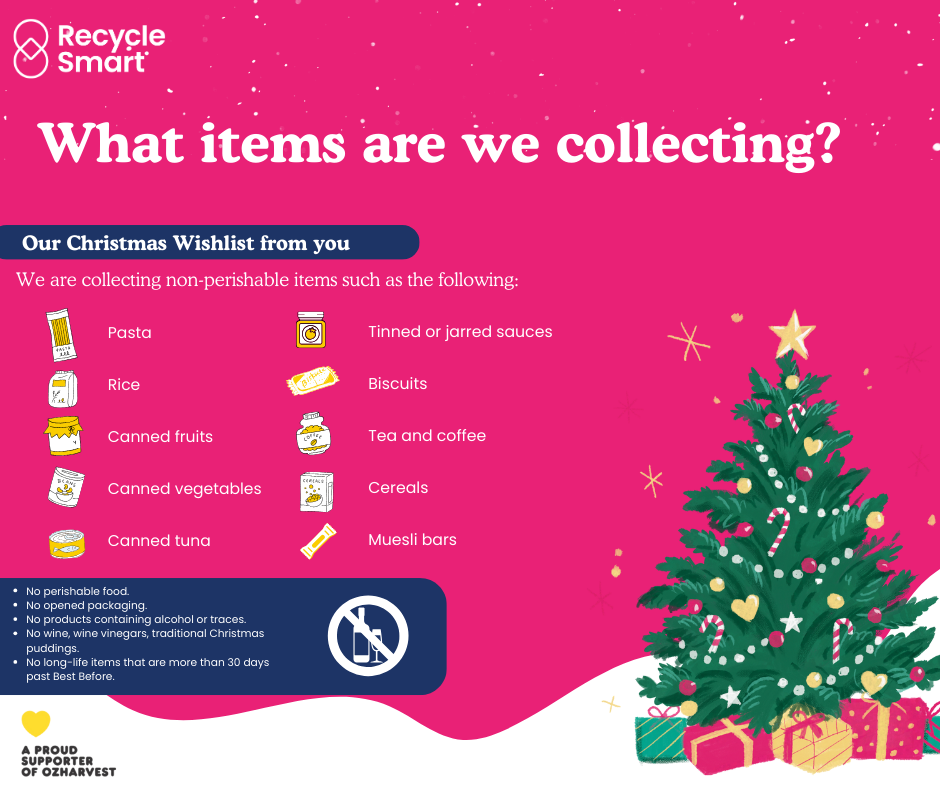 From November 29th-January 15th, we're running a special Christmas Food Drive for OzHarvest. We're calling on you, our awesome community, to donate non-perishable items. Together, let's bridge the gap between surplus food and those in need, making a real impact this festive season.